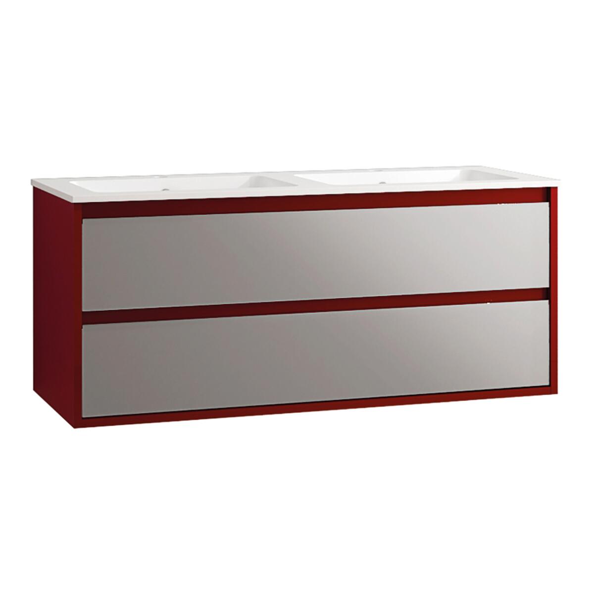 Base portalavabo Loto laccato lucido rosso per lavabo doppiavasca con 2 cassetti e frontali in vetro da L.119 H.50 P.45,5 cm