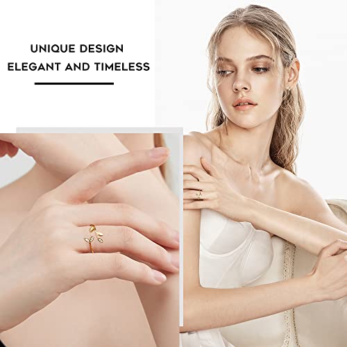 CASSIECA Anelli Donna in Argento Sterling 925 Foglia di Olivo Anelli Donna Regolabili Farfalla Anello Matrimonio Promessa Sposa Bande Anello