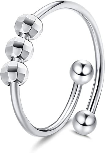 CASSIECA Anello Ansiolitico in Argento Sterling 925 per Donna Anello Spinner Agitato da Uomo Anelli Ansiolitici con Perline Pace Aperta Anelli a Fascia Regolabile Riduce Gli Elementi di Ansia
