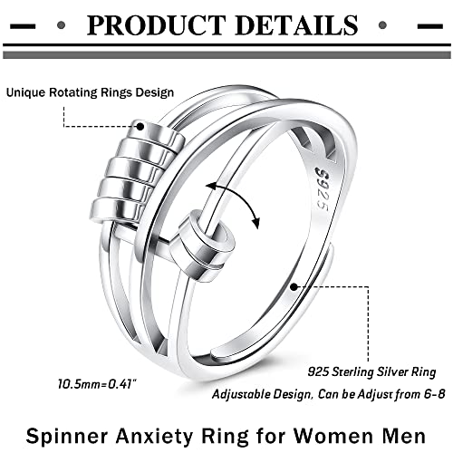 ✊ 【Anello in argento sterling 925】 L'anello ansiogeno è realizzato in argento sterling 925, anello contrassegnato "S925" per verificarne l'autenticità. La superficie dell'anello è altamente lucidata, resistente ai graffi.