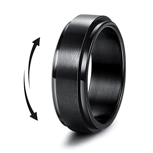 CASSIECA Black Fidget Ring Anello di Filatura in Acciaio Inossidabile Uomo Donna Ansia Anello di Filatura Antistress Anello di Filatura da Uomo Freddo Anello di Filatura a Catena Smerigliata