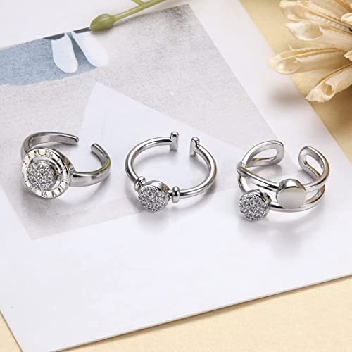 CASSIECA 3 Pezzi Anelli Ansia Fidget per Donna Uomo Anelli Ansia Impilabili Anelli Fidget Anelli Spinner Regolabili Anelli Antistress girevoli Doppio Strato Cubic Zirconia Anelli