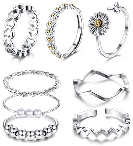 CASSIECA 8 Pezzi Anelli Impilabili Anelli Nocche Regolabili Anello con Fiore Margherita Nodo Aperto Anelli di Coda per Articolazioni Anelli per l'ansia con Perline Gioielli per Donne Ragazze