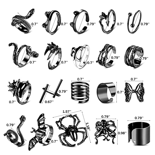 ★ Set di anelli neri ★ È possibile ottenere 20 anelli neri in un unico ordine, con apertura regolabile, design alla moda retrò, tra cui anello di serpente, anello rana, anello di ragno, anello a farfalla, anello ad ala del diavolo, ecc. Questi anelli neri in stile Y2K sono adatti sia per uomini che per donne e sono gioielli molto popolari.
