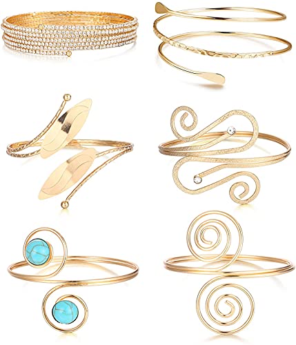 CASSIECA 6 pezzi Bracciale Superiore Spirale Set di Bracciali da Donna Minimalista Bracciali Gioielli Punk Bracciale Polsino Regolabile Oro/Argento, One Size, Metallo