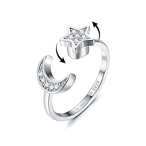 CASSIECA 925 Sterling Silver Fidget Ring for Women Girasole Spinner Ring You Are My Sunshine Anello Aperto Regolabile Anello CZ Anello Cuore Stella Margherita Antistress Anello Gioielli Regalo