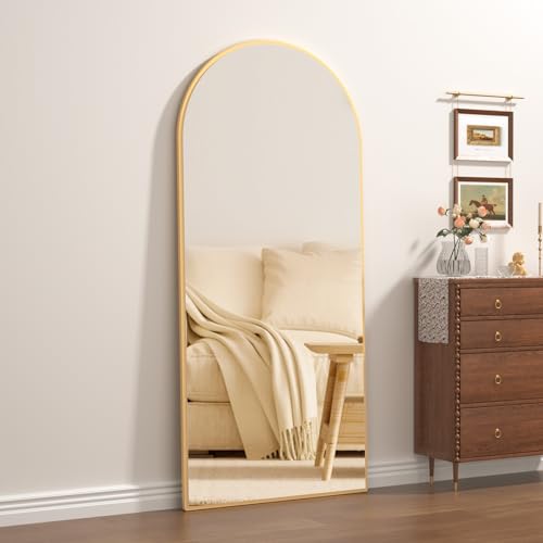 CASSILANDO Specchio a figura intera, 165,1 x 61 cm, specchio da terra, contro la parete, per camera da letto, spogliatoio e specchio a parete con cornice sottile (specchio grande, oro, 65 x 24)