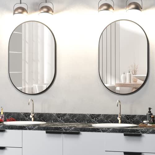 Specchio decorativo ovale: il design a forma di pillola di questo specchio da trucco è perfetto per qualsiasi stanza e ogni decorazione con un telaio in lega di alluminio per evitare ruggine e corrosione, dura più a lungo e può essere appeso in modo molto sicuro in bagno