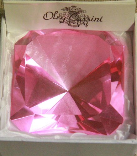 Oleg Cassini - Elizabeth - Rose Pink Emerald Square Diamond Cut Gem Crystal Signed Paperweight