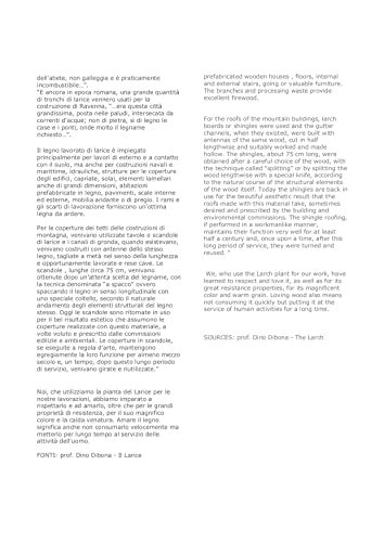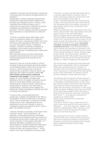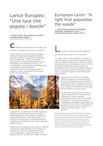 Massello di larice scelto lavorato con incastri a "coda di rondine" per evitare utilizzo di parti metalliche