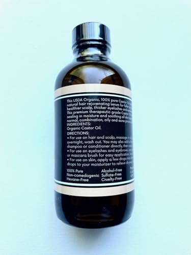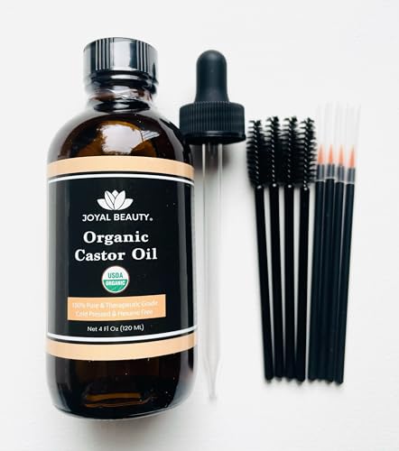 Castor Oil (4 OZ) USDA Organic 100% Pure Cold-Pressed Hexane-free Premium Quality Large Size for Hair Growth, Eyelashes, Eyebrows, Beard and Skin by Joyal Beauty. Bonus FREE Mascara Kit Included