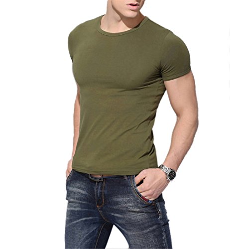 Uomo Casual Cotone T Shirt girocollo Solido muscoli di colore Tops Camicie Tee