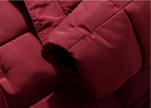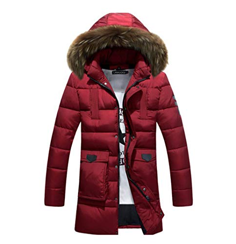 Uomo Casual Lungo Piumino Giacca Parka Caldo Addensare Imbottito Cappotto Con Removibile Pelliccia Sintetica Cappuccio Rosso M