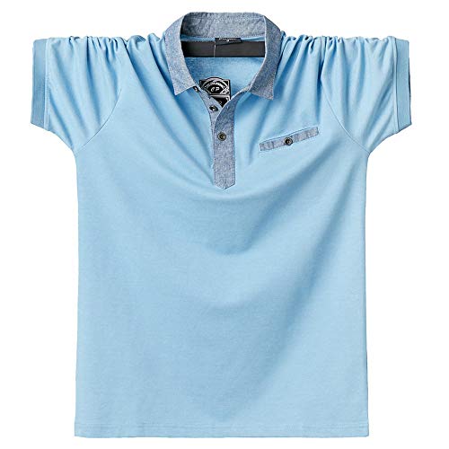 XJOE Casual Punta Corta Manica Corta Uomini Polo Camicia Classico Cotone Tinta unita Denim Collare Maniche Corte Polo per gli Uomini 5168, Azzurro, XXXXXL