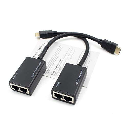1 Pair CAT5e CAT6 Extender 30m 10ft HDMI to RJ45 Network Extension Amplifier - black