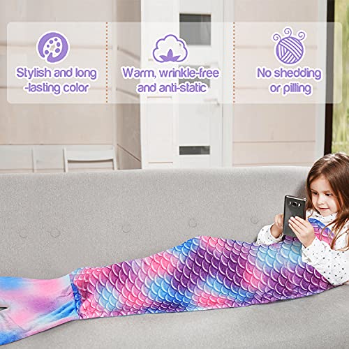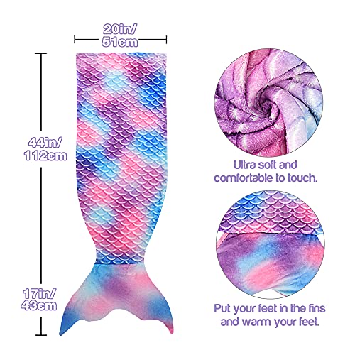 ♥ Bel design - Adorabile coperta a coda di sirena con un design a squame di pesce arcobaleno e colori brillanti di lunga durata. I tuoi piedi si adatteranno alla coda, puoi allungare i piedi fino alla fine della coda, riscaldare comodamente gambe e piedi.