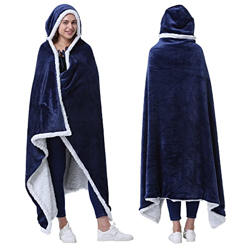 Catalonia Classy Elegante coperta con cappuccio in pile Sherpa accogliente, da indossare per adulti, donne, uomini, bambini, per casa o all'aperto, 125 x 185 cm