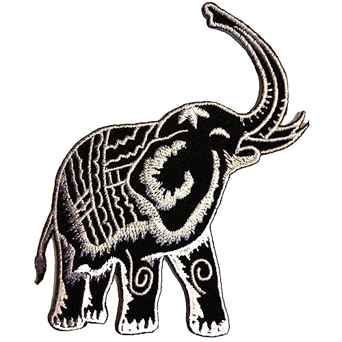 Catch the Patch Elefante Animale Tailandia - Toppe Termoadesive Patch Toppa Ricamate, Misura: 9,8 x 9,8 cm, Farbvariante:grigio
