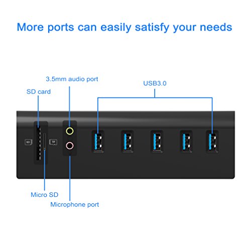 Cateck USB 3.0 5-Port Hub con Adattatore Audio Esterno e 2 Ingressi Card Reader Combinato ed Alimentatore Elettrico ad Alta Capacità 5V/4A per iMac, MacBook Air, Mac Pro, MacBook Pro, MacBook, Mac Mini, PC e Portatili, Nero