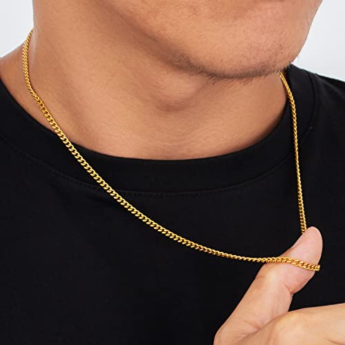 KRKC&CO Catena in Oro da 3mm, in Acciaio Inox Placcato Oro, Catena a Maglia Cubana, Catena a Maglia barbazzale in Acciaio Inox, Catena Hip Hop per Uomini e Donne, Lunghezza 55,9cm