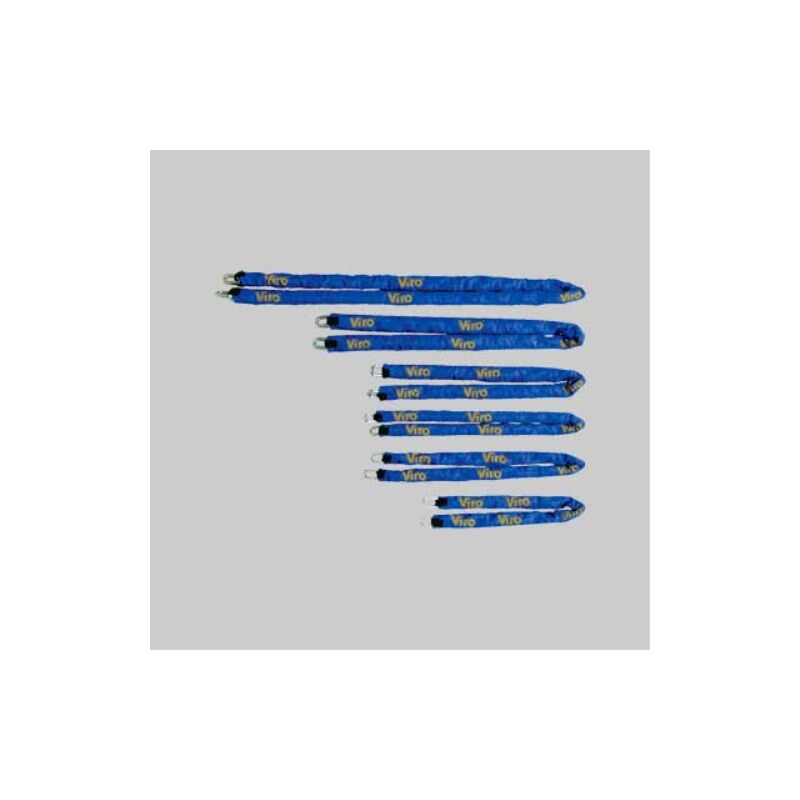 Catene semiquadre (per contrastare le troncatrici manuali che hanno generalmente lame taglienti adatte a trattenere i profili tondi) in acciaio cementato, temprato, rinvenuto e zincato. Ricoperta da guaina di protezione di colore blu, in tessuto che minimizza l'ingombro e antigraffio. Ampiezza alloggiamento lucchetto: 1109402 - 13mm, 1109406 - 10mm, 1109410 - 14,5mm. Catena antifurto lucchetti viro mm 6 x 90cm VIRO Catene con lucchetti