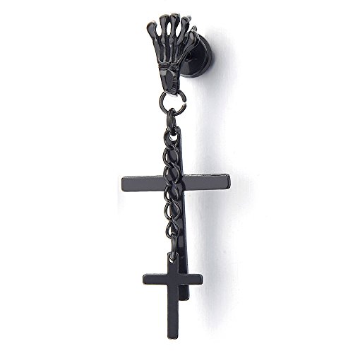 Nero Catena Artiglio Scheletro Orecchini di Croce, Orecchini da Uomo Donna, Orecchini a Lobo, Acciaio, 2 Pezzi