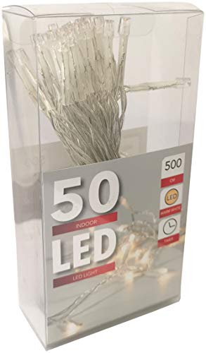 50er catena di luci led a batteria bianco caldo + Timer Cavo trasparente (20103)