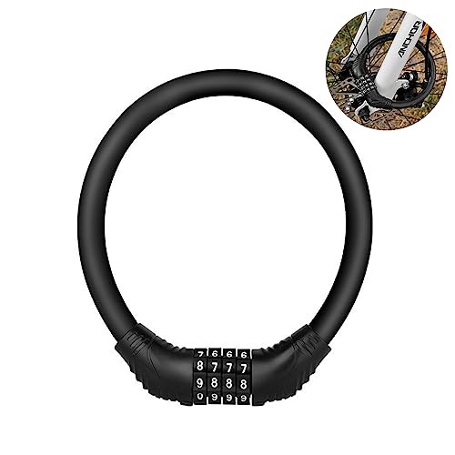 Serratura a combinazione di alta qualità: questo cavo per bicicletta è realizzato con un robusto cavo d'acciaio, cilindro in lega di zinco di alta qualità, corpo della serratura in un unico pezzo avvolto in PVC, maniglia confortevole, che impedisce efficacemente che la bicicletta venga graffiata, anti-corrosione e anti-ruggine.