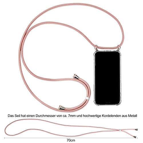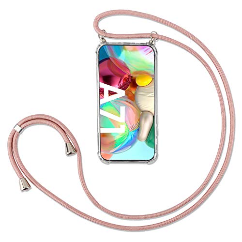 Catena per cellulare compatibile con Samsung Galaxy A71, custodia con cinturino, custodia per smartphone da appendere con cordoncino, custodia in silicone trasparente (oro rosa)