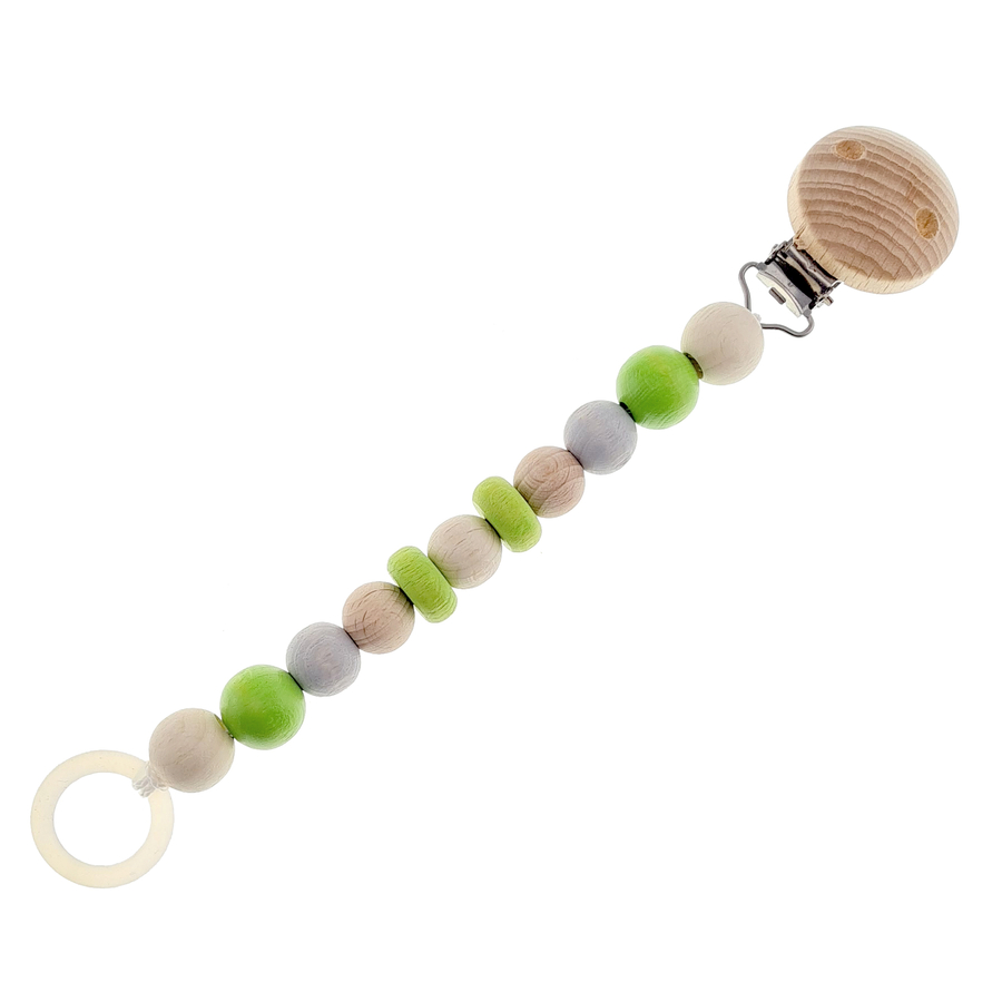 Hess La catena portaciuccio in verde mela naturale di toys non è solo pratica ma anche elegante. Le diverse forme delle parti in legno invitano il bambino a scoprirle e a toccarle. Questa catena portaciuccio colorata può contenere sia ciucci con che senza anello. È sufficiente posizionare l'anello intorno al ciuccio e stringerlo. Hess Quando si acquistano giocattoli in legno, si acquistano giocattoli di alta qualità per il bambino. Sono caratterizzati da qualità, immaginazione e colorazione. Durante la produzione viene prestata particolare attenzione alla conformità con la norma europea EN 71. Dettagli del prodotto: Dimensioni (lunghezza): circa 21 cm Materiale: legno Non fa cadere il ciuccio Si adatta a quasi tutti i manichini grazie all'anello in silicone I materiali sono a prova di saliva/sudore e privi di sostanze nocive Realizzato in legno locale 100% prodotto in Germania Età: dalla nascita Attenzione Assicurarsi che il ciondolo sia sempre attaccato al capo d'abbigliamento o alla carrozzina, controllare regolarmente la catenella e rimuoverla immediatamente se è difettosa o danneggiata. Non allungate mai la catenella del ciuccio e non attaccatela a corde, nastri, cinghie o parti sciolte degli indumenti. Il bambino potrebbe strangolarsi. Quando si pulisce la catena portaciuccio, assicurarsi che venga risciacquata con acqua tiepida e sapone neutro, lasciata asciugare all'aria ed evitare l'uso di detergenti aggressivi che potrebbero danneggiare la catena portaciuccio. la catena portaciuccio è stata prodotta in conformità alla norma DIN EN 12568:2007.