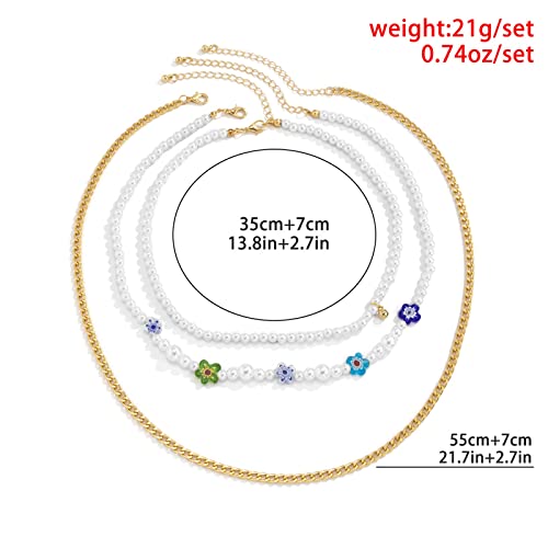Catena Collana Donna, 3 Pezzi Collana Multistrato Donna Catena a clavicola con fiore di perla Collane a Catena con Ciondolo Catenina Regolabile, Regalo di Gioielli Estivi per i Migliori Amici,, Oro