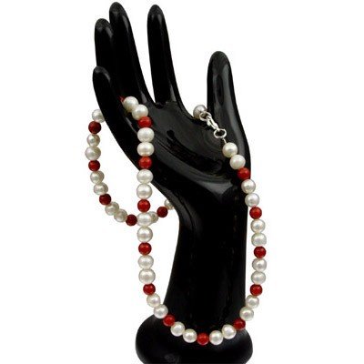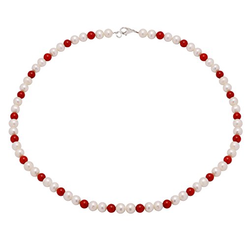Catena Collana in perle d'acqua dolce bianco reale &-Collana da donna, colore: rosso corallo