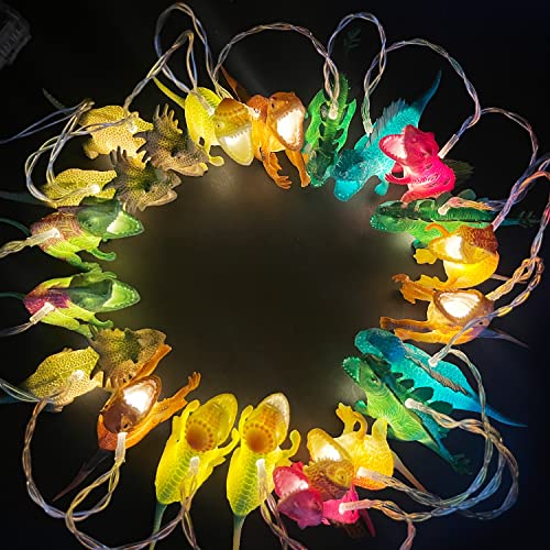 【20 LED dinosauri】 Catena luminosa da 3 m con timer remoto e 20 LED, può illuminare in tutte le direzioni. Il colore delicato consente a voi e ai vostri bambini di rilassarsi senza danneggiare gli occhi