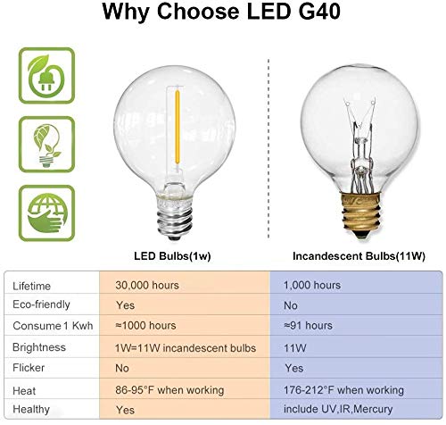 【CATENE LUMINOSE PER ESTERNI 50 LAMPADINE LED】 46 + 4 lampadine a filamento LED extra incluse, Tutte le nostre lampadine a LED sono ecologiche, senza piombo o mercurio, nessuna radiazione UV o IR, risparmiano il 90% sulla bolletta dell'illuminazione elettrica, forniscono una luce calda diffusa e bella, un'atmosfera bellissima