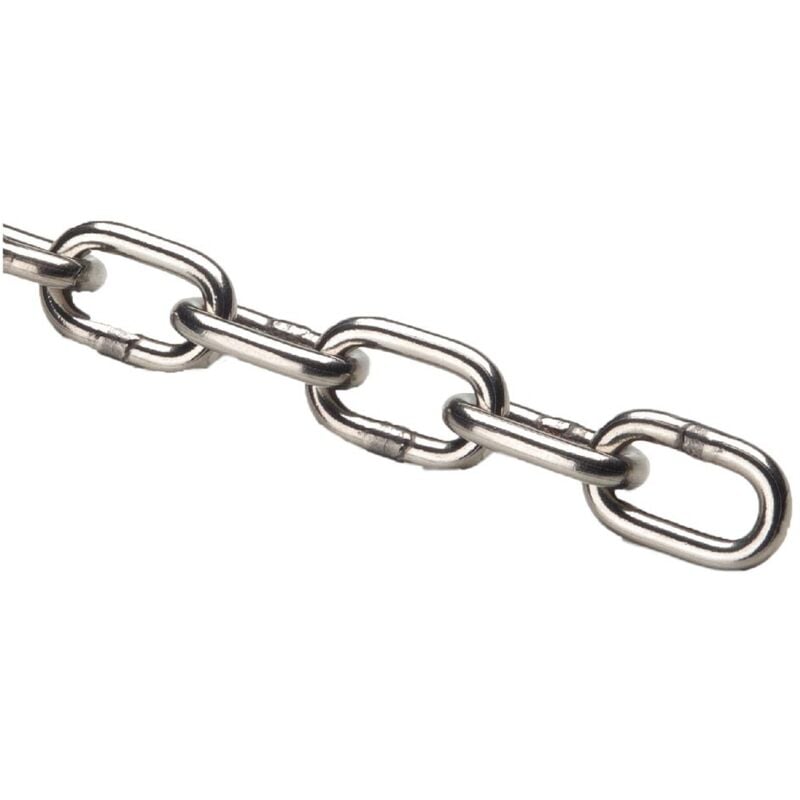 In acciaio zincato elettroliticamente. Non idonea al sollevamento e/o trazione. Dimensioni espresse: spessore x lunghezza interna x larghezza esterna maglia.. n.28 mm9,0 x mt 15 Ømm 37,0 x 34. Prezzo inteso per: 1 CF
