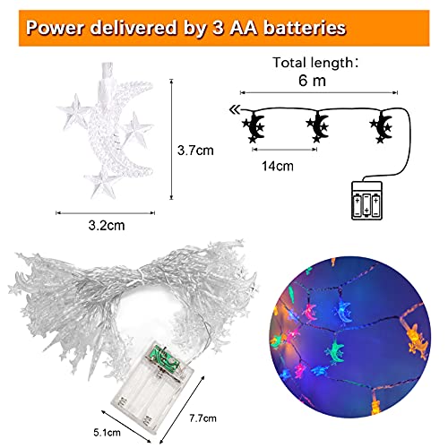 Decorazione della catena luminosa: la stringa di luci delle fiabe è lunga 6 m e ha 40 luci a LED.Ci sono tre pacchetti di colori tra cui scegliere, bianco, caldo e colorato.Puoi scegliere il pacchetto che non usi in base alle tue preferenze personali. Calda luce delle stelle, crea un'atmosfera romantica e crea una scena più unica per la tua festa.