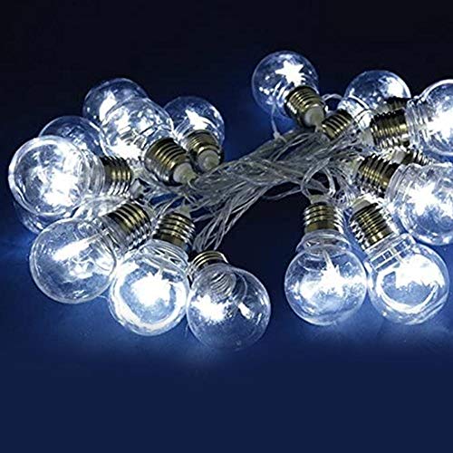 Catena Luminosa 20 Bulbi forma Lampadina Trasparente LED Bianco Freddo Stella luci per Albero Illuminazione Party Bakaji