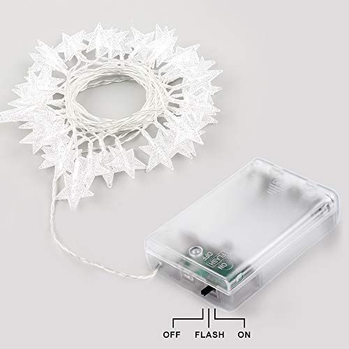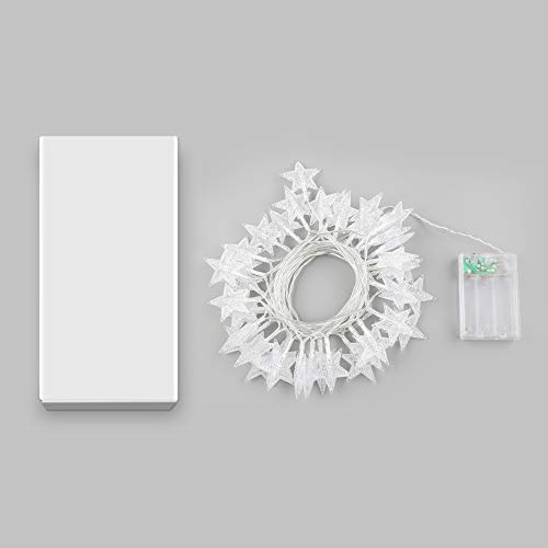 ★Alta Qualità★ Catene luminose a stelle è lunga 16,4FT / 5 M in totale, la distanza tra ogni luce a LED: 12 cm / 4,7 pollici. 40 luci a LED a forma di stella con materiale plastico solido, alimentato a batteria