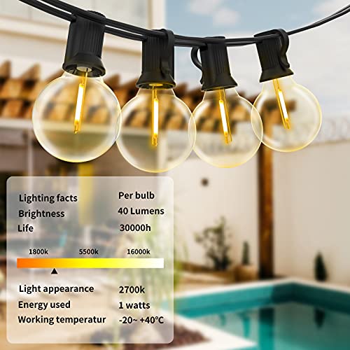 【Sicurezza & Durata】 LFFG Le lampadine G40 trasparenti sono realizzate in plastica resistente di qualità superiore e sono molto più sicure delle tradizionali lampadine in vetro. Il filo complessivo delle luci da esterno giardino non solo ha una resistenza sicura e alle alte temperature, ma anche la curvatura della linea non è facile da rompere dopo essere stata utilizzata molte volte ripetutamente. Ogni lampadina dovrebbe fornire una durata fino a 30000 ore.