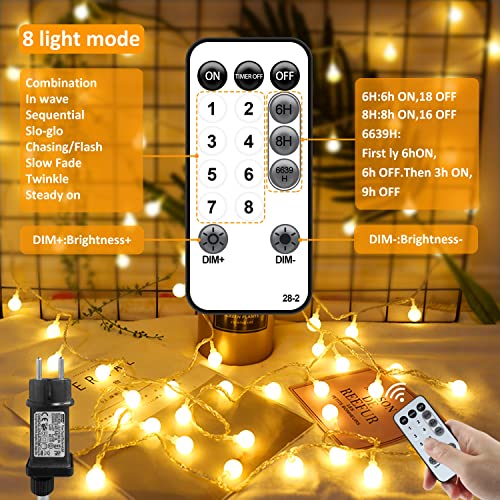【8 Modalità di Illuminazione Funzione di Memoria】 le catena luminosa esterno hanno 8 modalità di illuminazione, diverse modalità possono creare atmosfere diverse, si può cambiare in qualsiasi momento in base al vostro umore. La funzione di memoria può salvare l'ultima modalità di illuminazione, senza bisogno di resettare ogni volta che si accende la luci natale esterno.