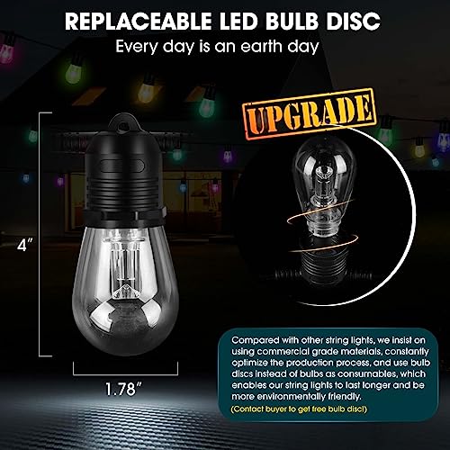 2023 LUCI A LED SUPER LUMINOSE AGGIORNATE: il nostro forte team di ricerca e sviluppo ha migliorato le prestazioni in base al prodotto simile sul mercato. Le luci a stringa da 15 W più luminose, adottano la luminosità del dimmer della tecnologia RGBCW 2700K-6500K, personalizzano ogni lampadina con 16 milioni di colori vivaci per i bar del giardino del caffè. Le luci colorate come decorazioni per esterni brilleranno in ogni occasione di festa.