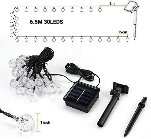 ☀ 【30 LED Luci a Globo Esterno 】 Le luci a stringa solari sono lunghe 6.5m 6.5m totali (la lunghezza della luce è 4.5m + il cavo è 2m) e sono composte da 30 sfere LED in cristallo di alta qualità. Perfette luci decorative per il tuo giardino, prato, cortile, Albero di Natale.