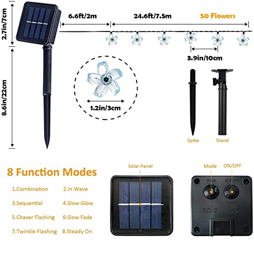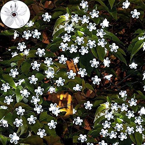 Catena Luminosa Esterno Solare, EAAERR 7M 50 LED Luci a stringa solare di fiori di ciliegio all'aperto, 8 Modalità Luci Solari da Esterno per Giardino, Patio, Terrazza, Gazebo(bianco freddo)