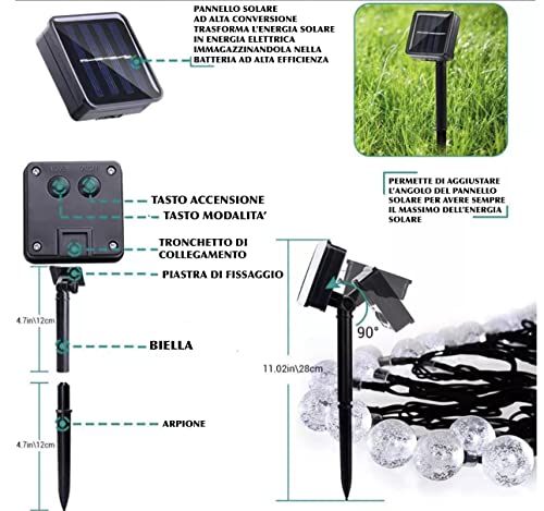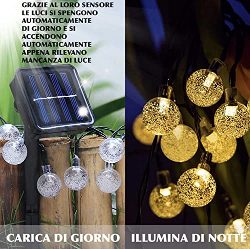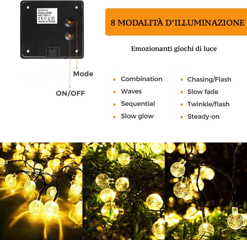 DBC Catena Luminosa Esterno Solare (9,5M 50 LED) Forma Di Crystal Globe, 8 Modalita', Impermeabili IP65, Per Giardino, Patio, Recinzione, Festa, Ristorante