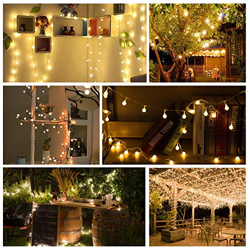 Catena Luminosa Esterno Solare, 50 LED Luce Stringa Solari Cristallo Globo Impermeabile Lucine Led Decorative per Giardino, Matrimonio, Prato, Cortile, Albero di Natale (Bianco Caldo)