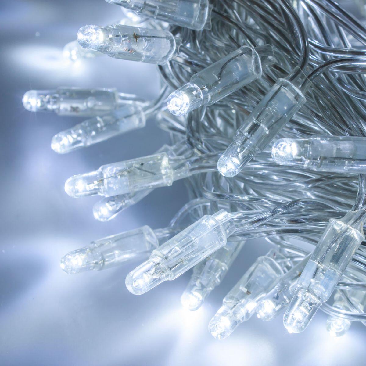 Catena 96 maxi LED bianco freddo 7mm 24V, cavo esterno trasparente. Lunghezza 10m. Adatta all'uso professionale. Ideale per uso esterno