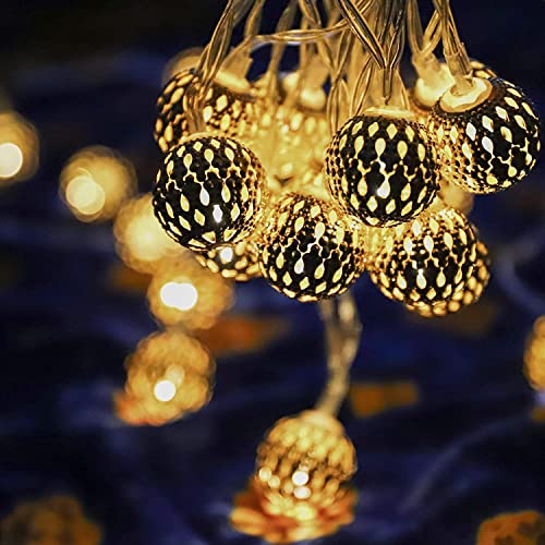 Design Speciale a Forma di sfera marocchina in Metallo: le luci a stringa a LED sono progettate con bulbo a LED luminosi a forma di sfera marocchina di metallo di alta qualità, vintage e lucidi e possono essere utilizzate per decorare qualsiasi luogo all'interno e all'esterno.