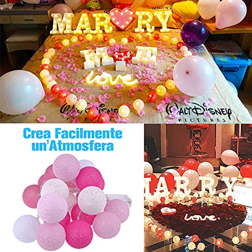 Catena Luminosa a LED con Sfere di Cotone, AISOO 10.8FT 20 LED Luci Fata a Stringa LED Luci Ghirlanda Interni Esterni Decorative Stringa per Natale Giardino Compleanno Matrimonio Festa Cameretta, Rosa