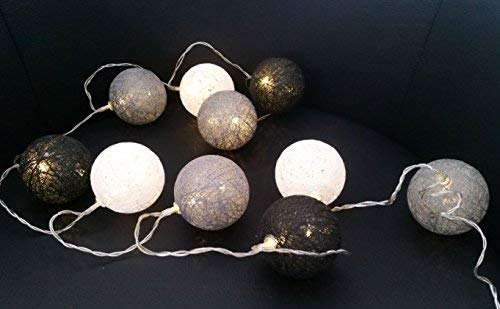 Catena luminosa a LED con 10 sfere di cotone, alimentazione a batteria, colore luce: bianca calda