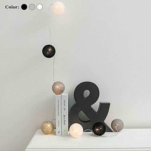 Catena Luminosa a LED con 20 Sfere di Cotone Romantico, DOTBUY Stringa di luce Batteria Ghirlanda luminosa Decorazione Palla Catena di Luci per Balcone (Noble Grey,3.3M/20LED)